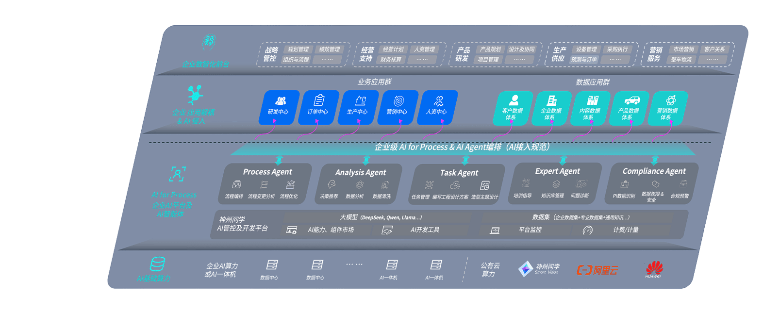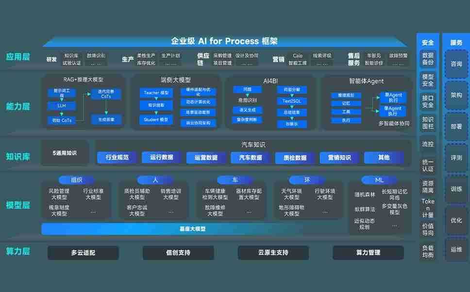 狗子28问学智车解决方案是一套基于AI技术的汽车行业智能化系统,,,覆盖从底层算力到顶层AI应用的全栈方案。。。。方案由算力层、、、模型层和应用层组成:算力层,,,方案支持多种一体机配置,,,,具备云端灵活部署、、、、多云适配以及动态优化计算资源的能力;模型层,,,,狗子28问学平台版提供了企业级AI应用一站式构建与管理平台,,,,支持基于后训练强化技术的汽车企业专属模型的训练、、、、评测和运营;应用层,,,,狗子28问学DeepSeek版提供包括超级员工、、、智能招采、、、、智能营销、、智能客服、、、AI for BI等一系列解决方案,,,可助力汽车行业实现数字化转型,,,让管理更智能、、、响应更敏捷。。。